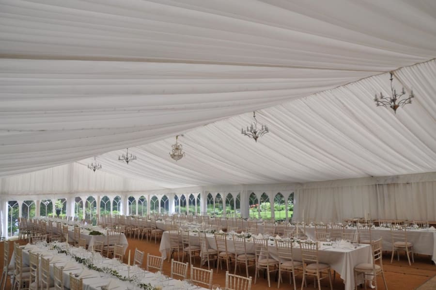 - Range of accessories: windowed walls, drapes, flooring, heating and event lighting.